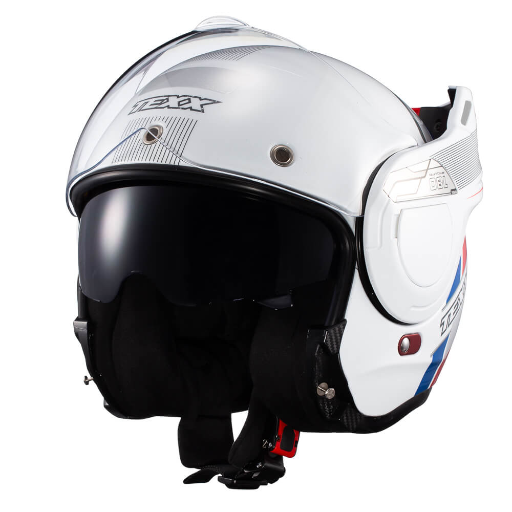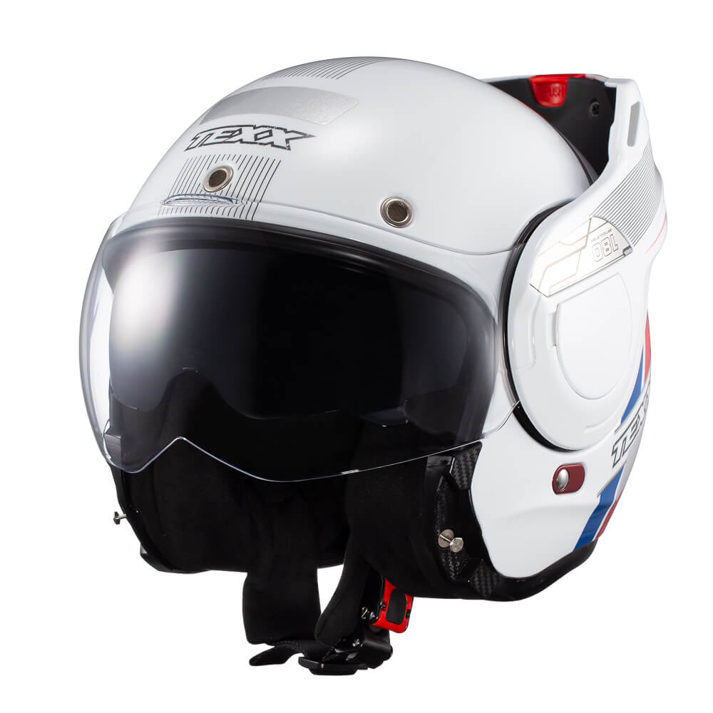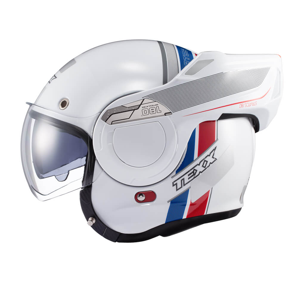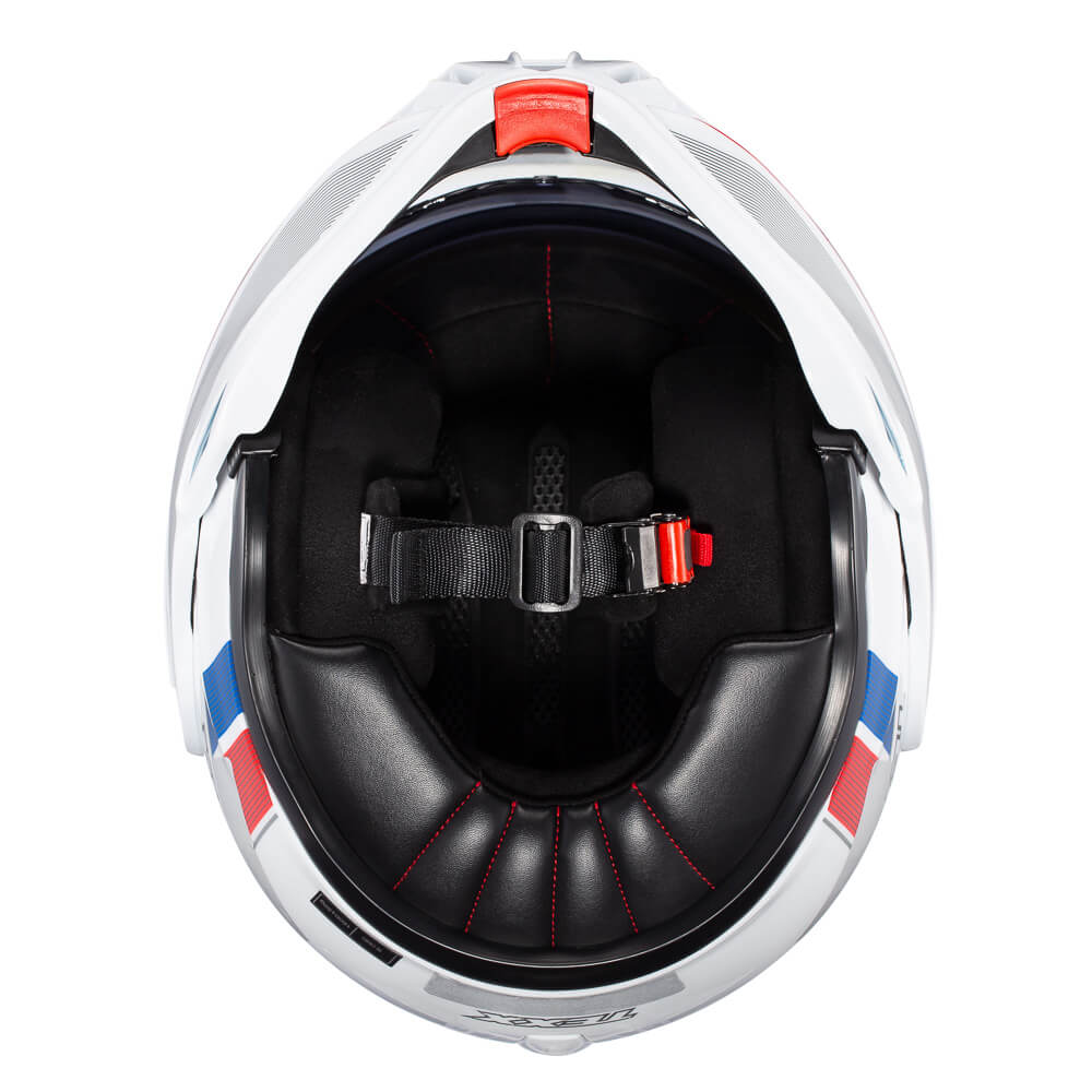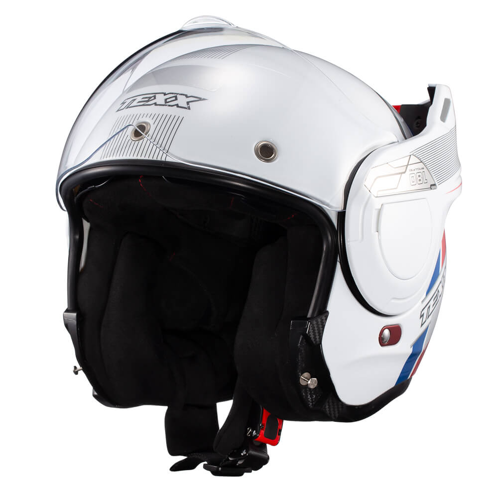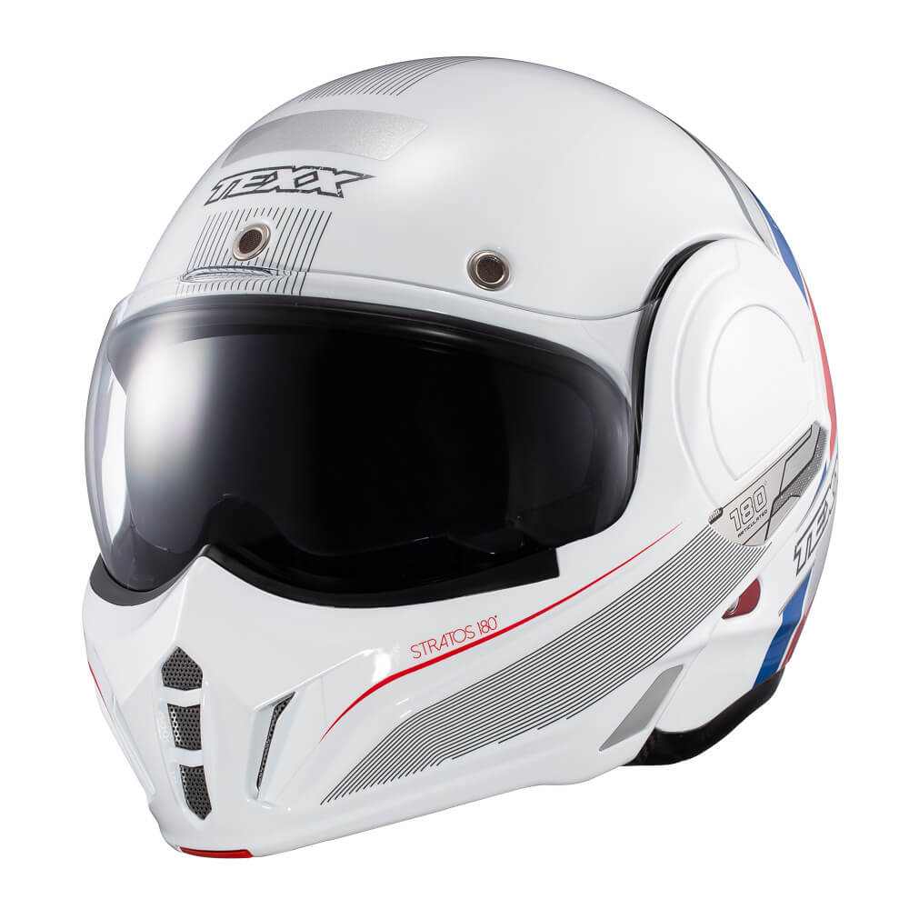 CAPACETE TEXX STRATOS 180° JOURNEY BRANCO C/ AZUL E VERMELHO