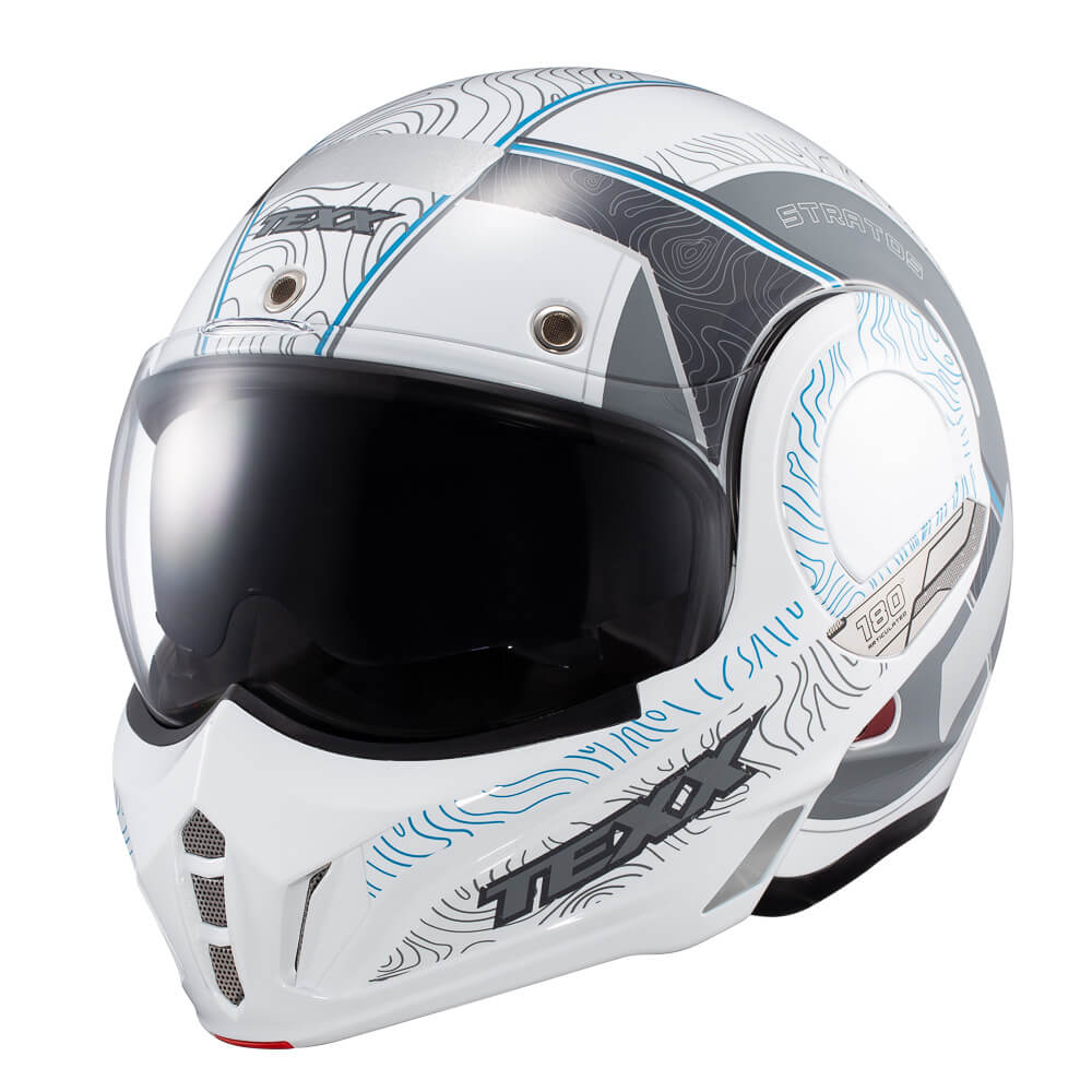 CAPACETE TEXX STRATOS 180° TOPOGRAPHIC BRANCO C/ AZUL