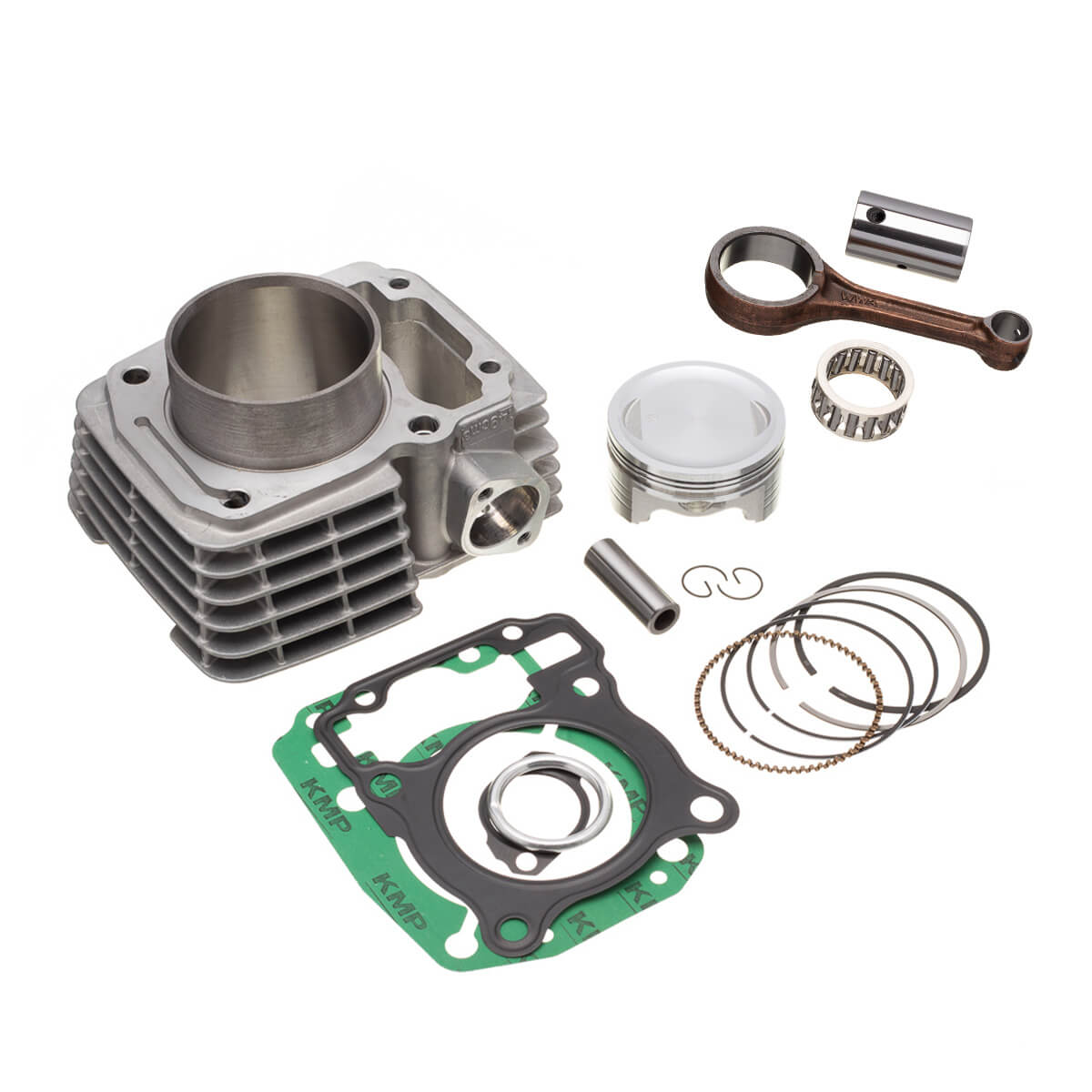 Descrição: KIT MOTOR KMP/WW3 (COM CILINDRO. PISTAO. ANEL. JUNTA KIT-A. BIELA) CG 190 – BROS 190 (CG 150 2004/2015 – BROS 150 2006/2015 COMPETICAO KIT AUMENTO P/ 190CC 64.50MM)