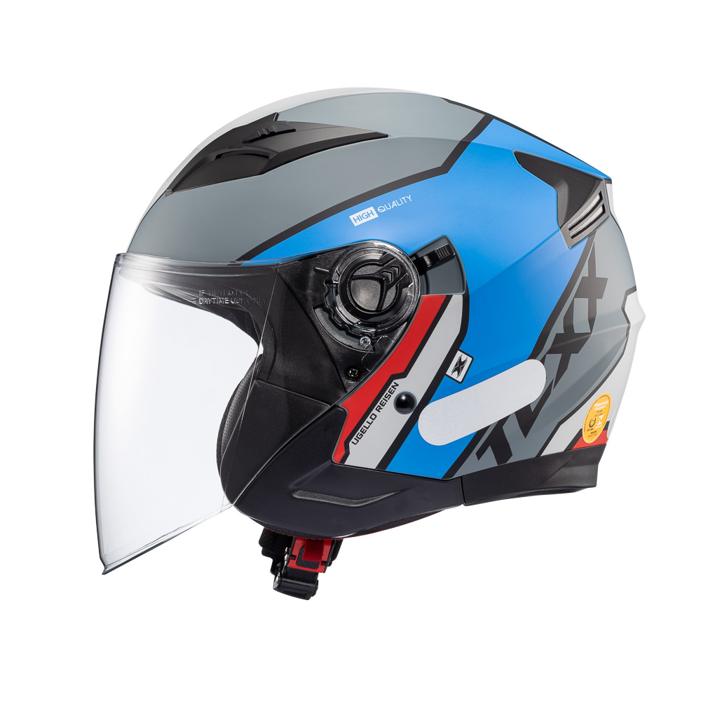 CAPACETE TEXX ABERTO UGELLO REISEN AZUL, VERMELHO E BRANCO