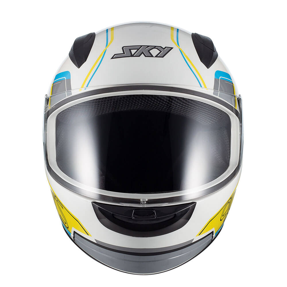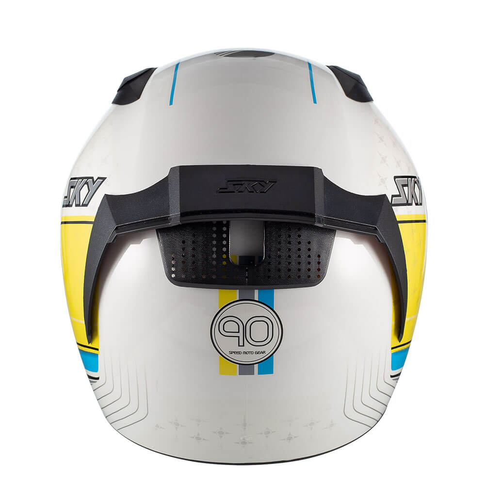 CAPACETE SKY ANOS 90 BRANCO AZUL C/ AMARELO