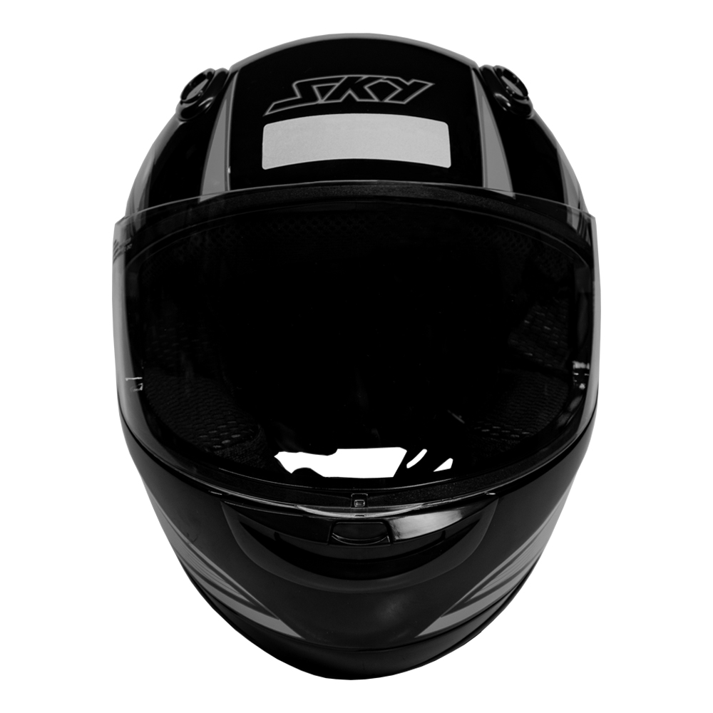 Localizar RevendedorNome do Produto: CAPACETE SKY APOLO PRETO BRILHO, TRANSF CINZA