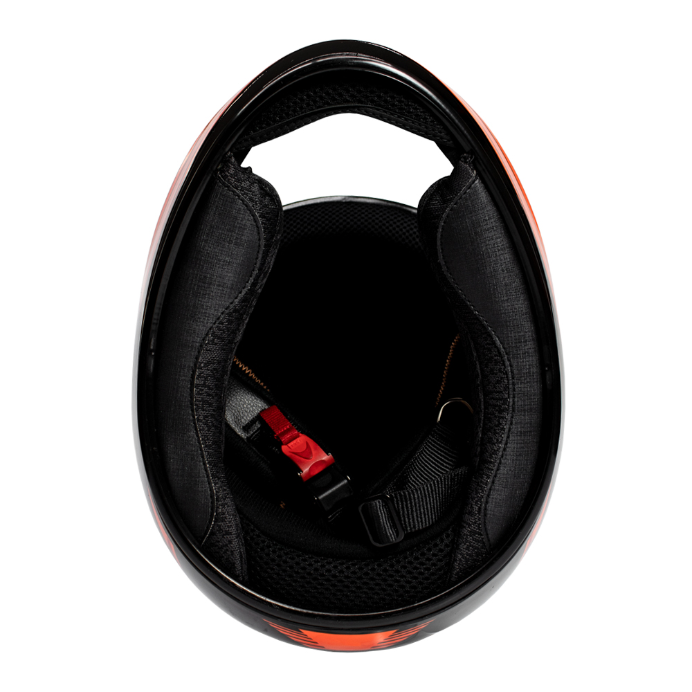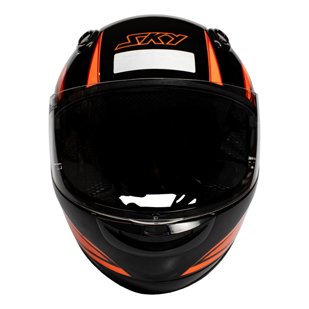 Descrição: CAPACETE SKY APOLO PRETO BRILHO, TRANSF LARANJA
