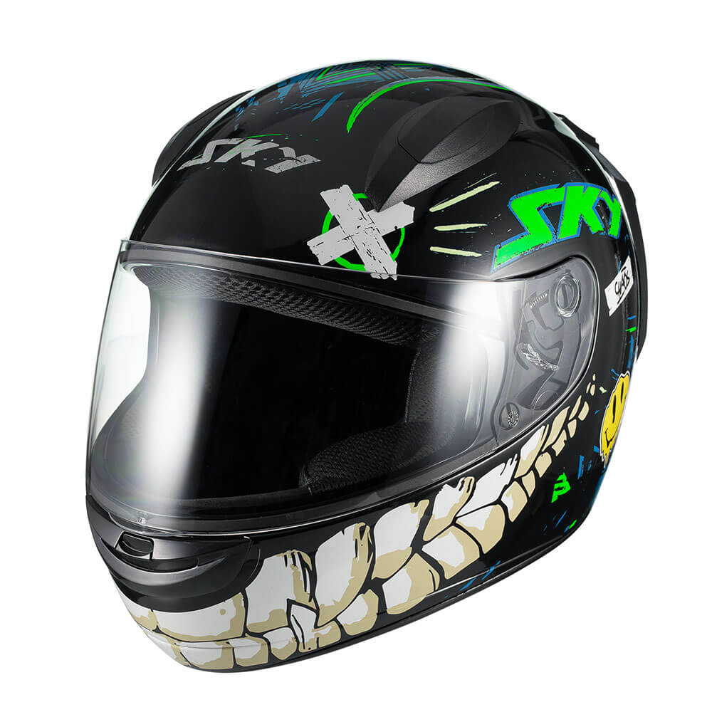 Descrição: CAPACETE SKY CHAOS PRETO C/ VERDE