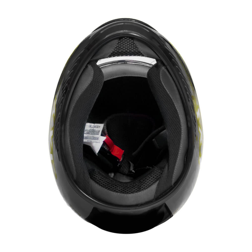 Descrição: CAPACETE SKY GAMMA PRETO BRILHO, TRANF VERDE/AMARELO