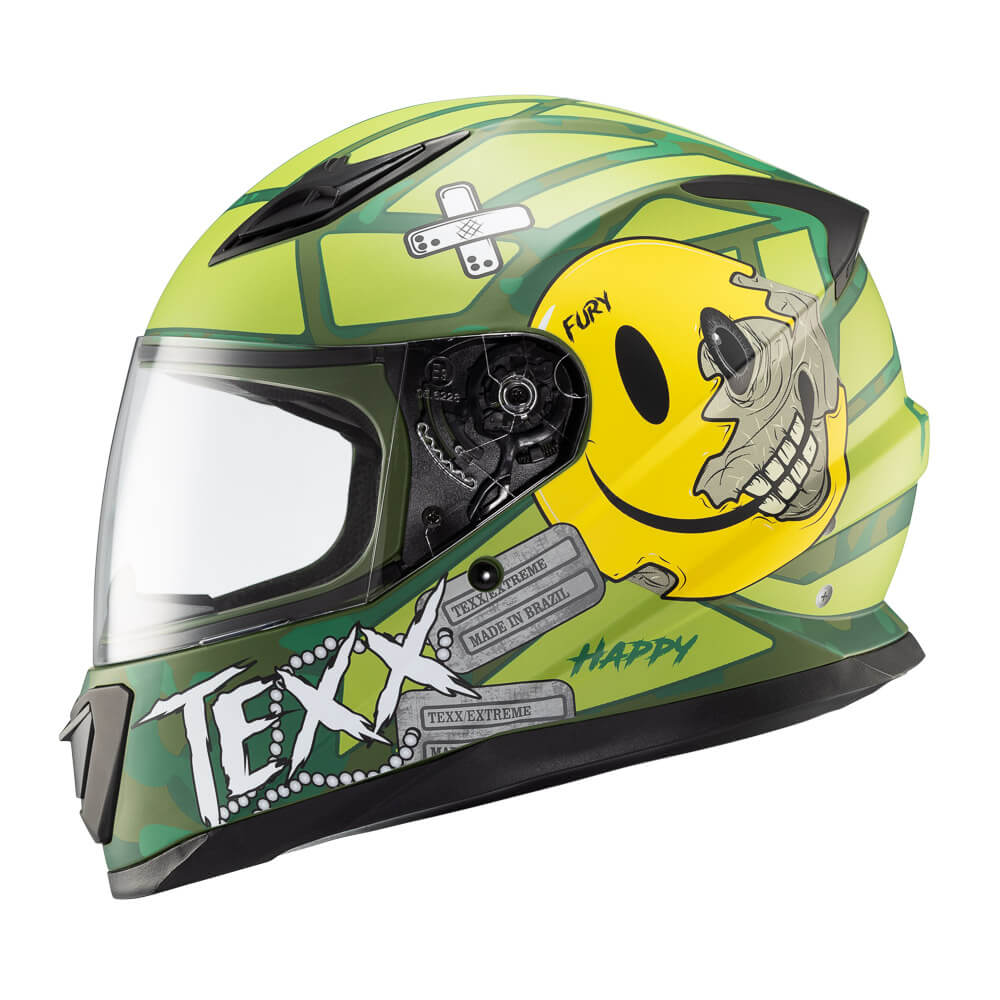 CAPACETE TEXX FECHADO HAWK FURY VERDE, AMARELO E VERMELHO