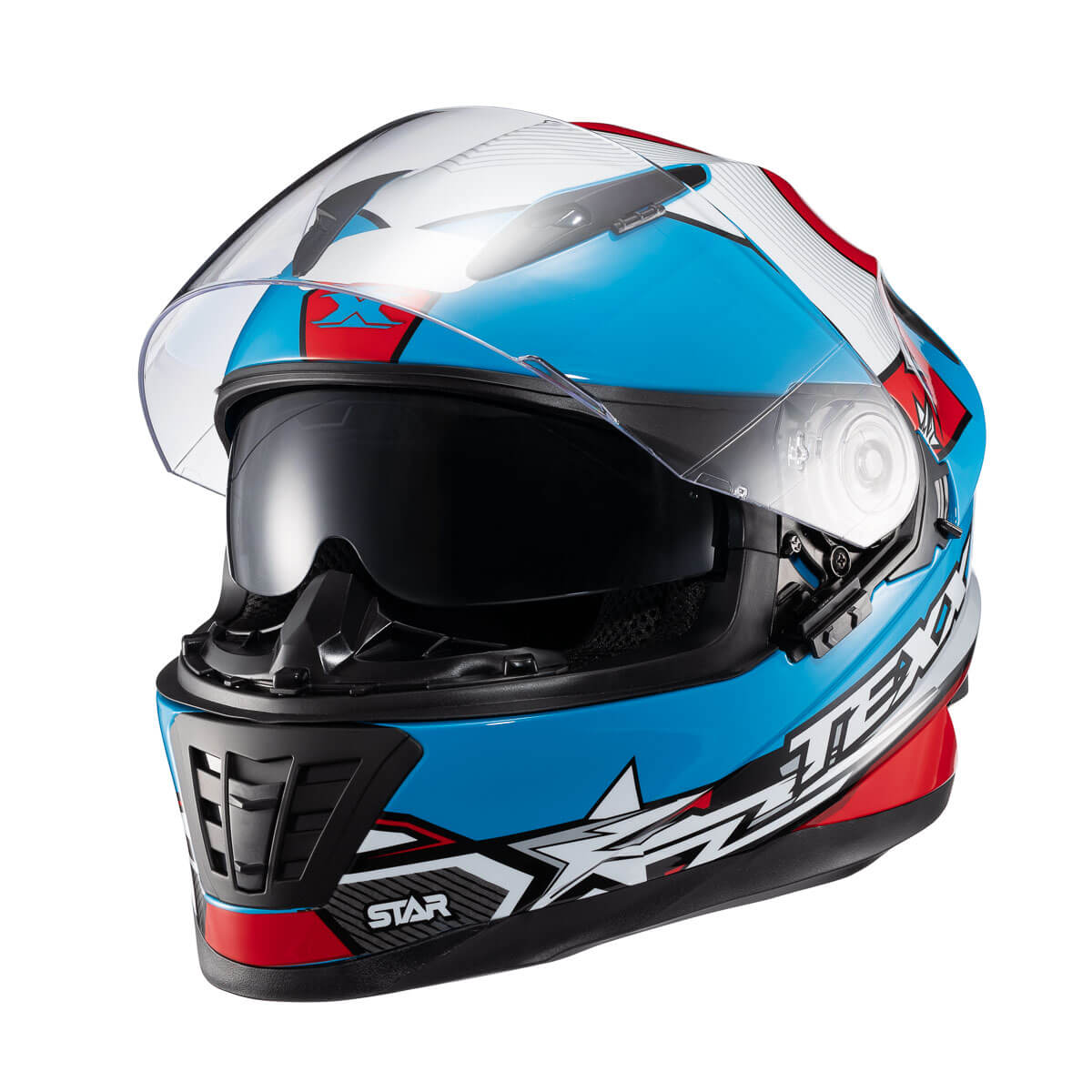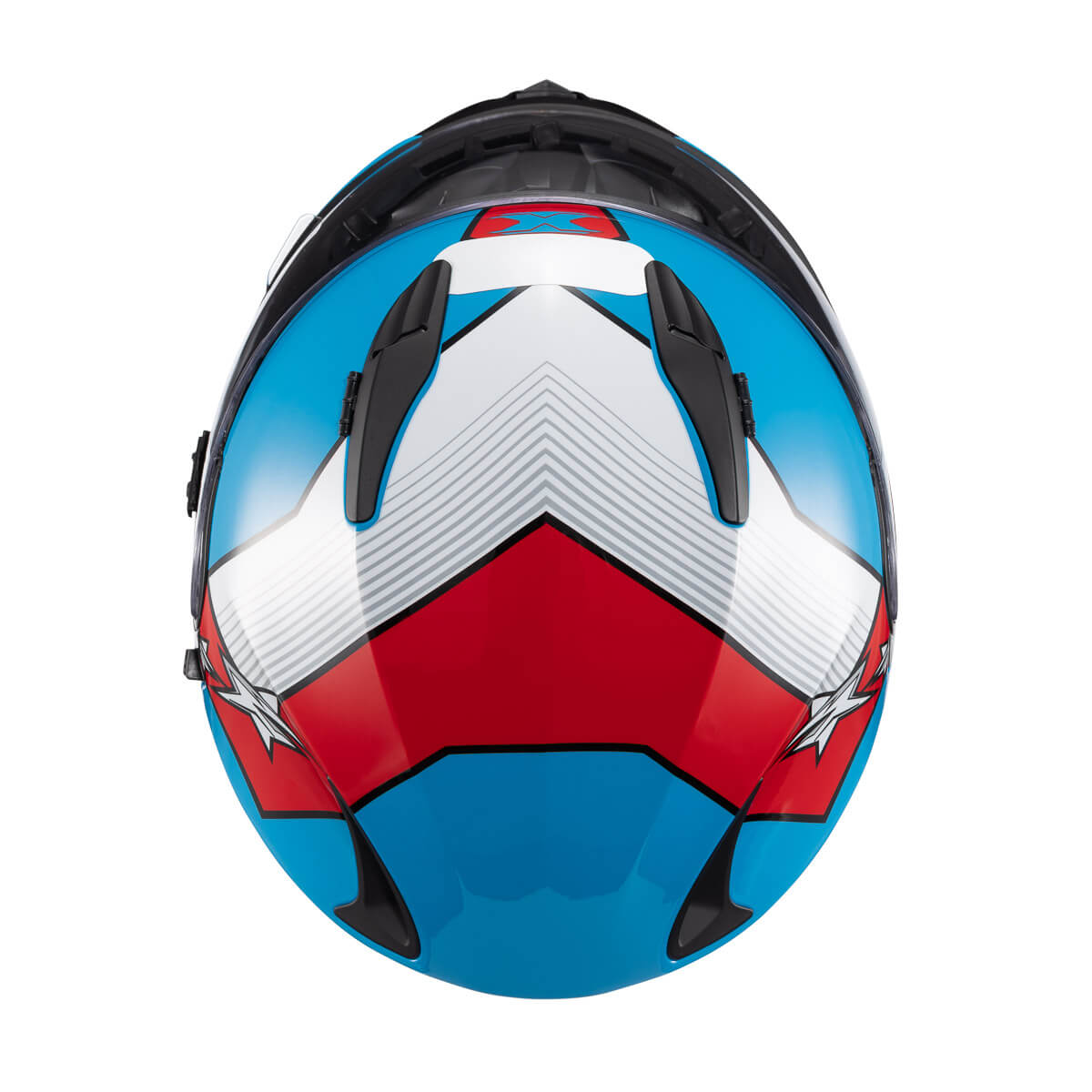 CAPACETE TEXX FECHADO WING SUPERSTAR AZUL VERMELHO E BRANCO