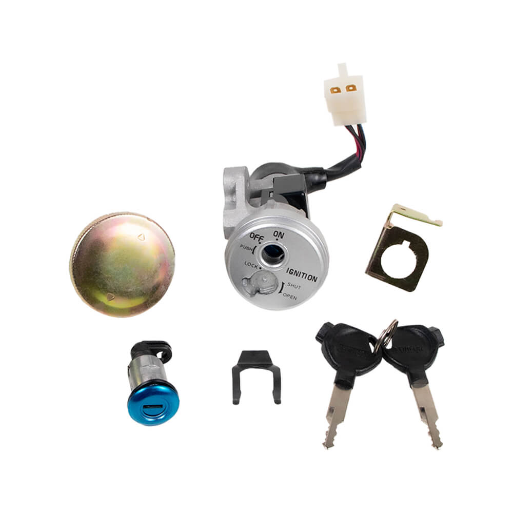 Descrição: CHAVE IGNICAO (KIT CONJUNTO TRAVAS) CONDOR BIZ 125 2009/2015 (KIT 4PÇS CONTÉM: CHAVE IGNIÇÃO + TAMPA TANQUE + TRAVA DO BANCO + OBTURADOR – ACOMPANHA 02 CHAVES)