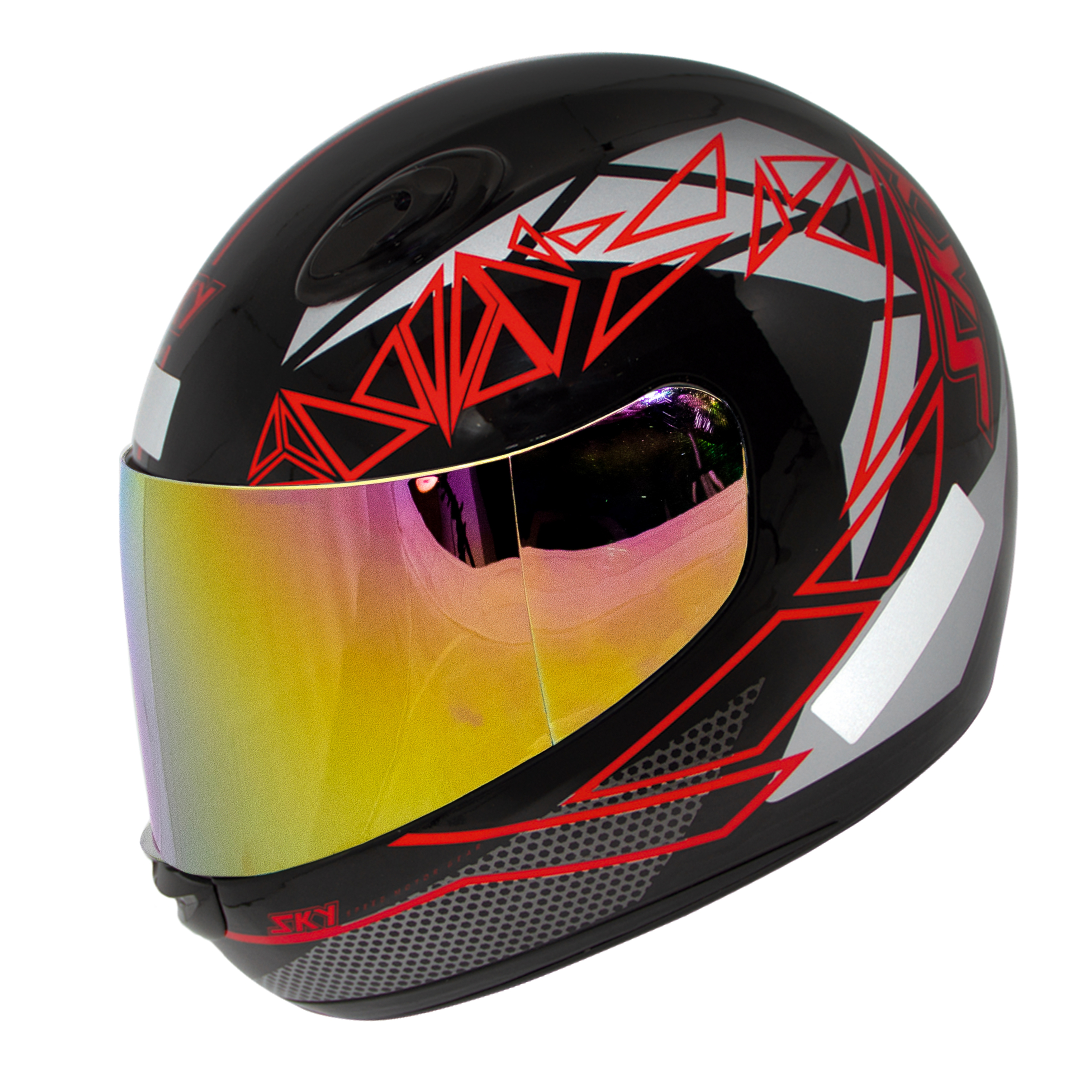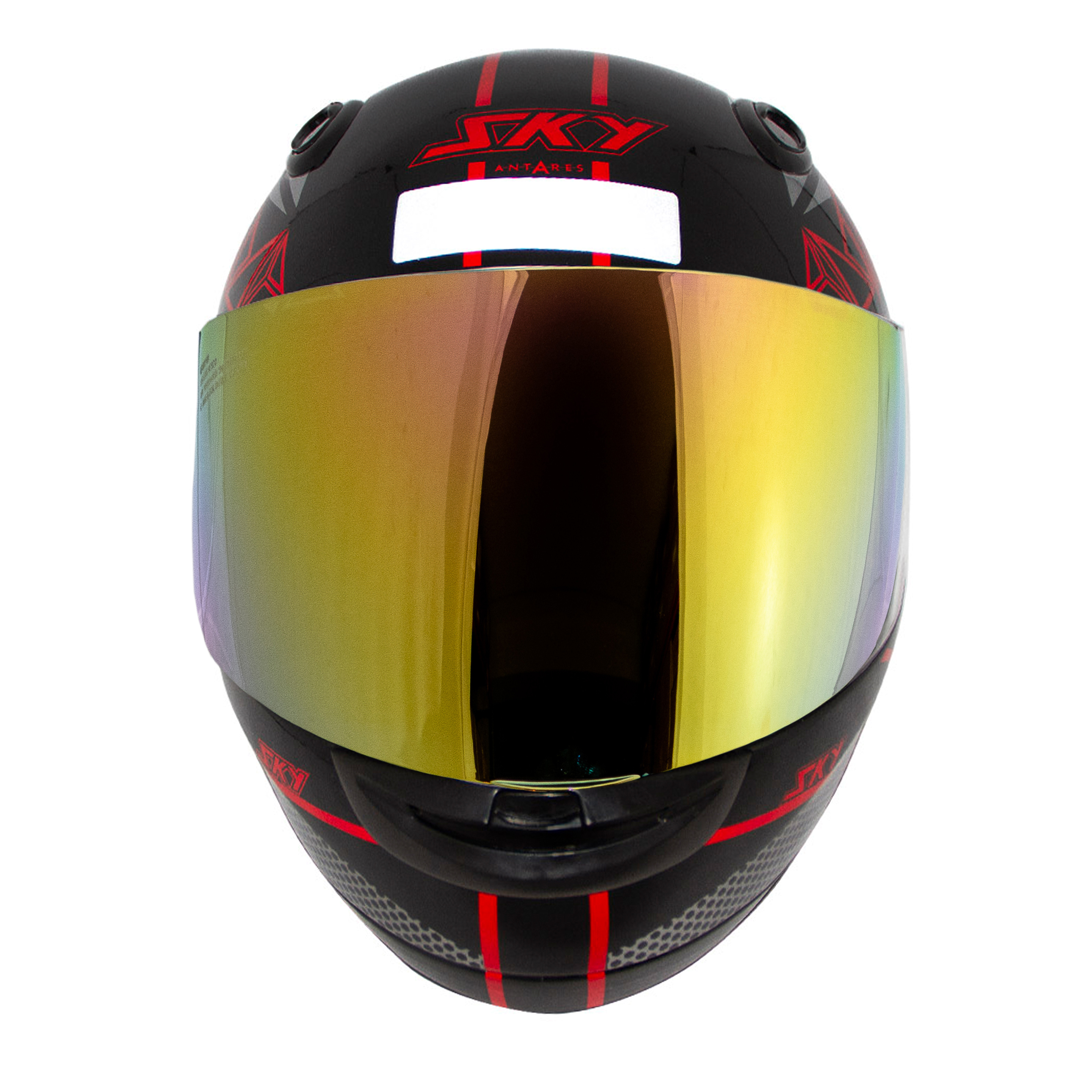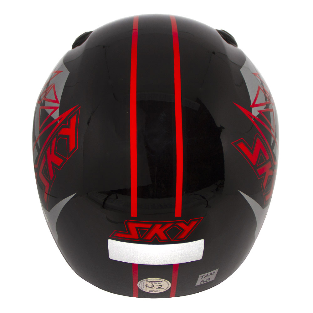 Descrição: COMBO CAPACETE SKY ANTARES PRETO BRILHO/TRANSF VERMELHO + VISEIRA AZUL IRIDIUM
