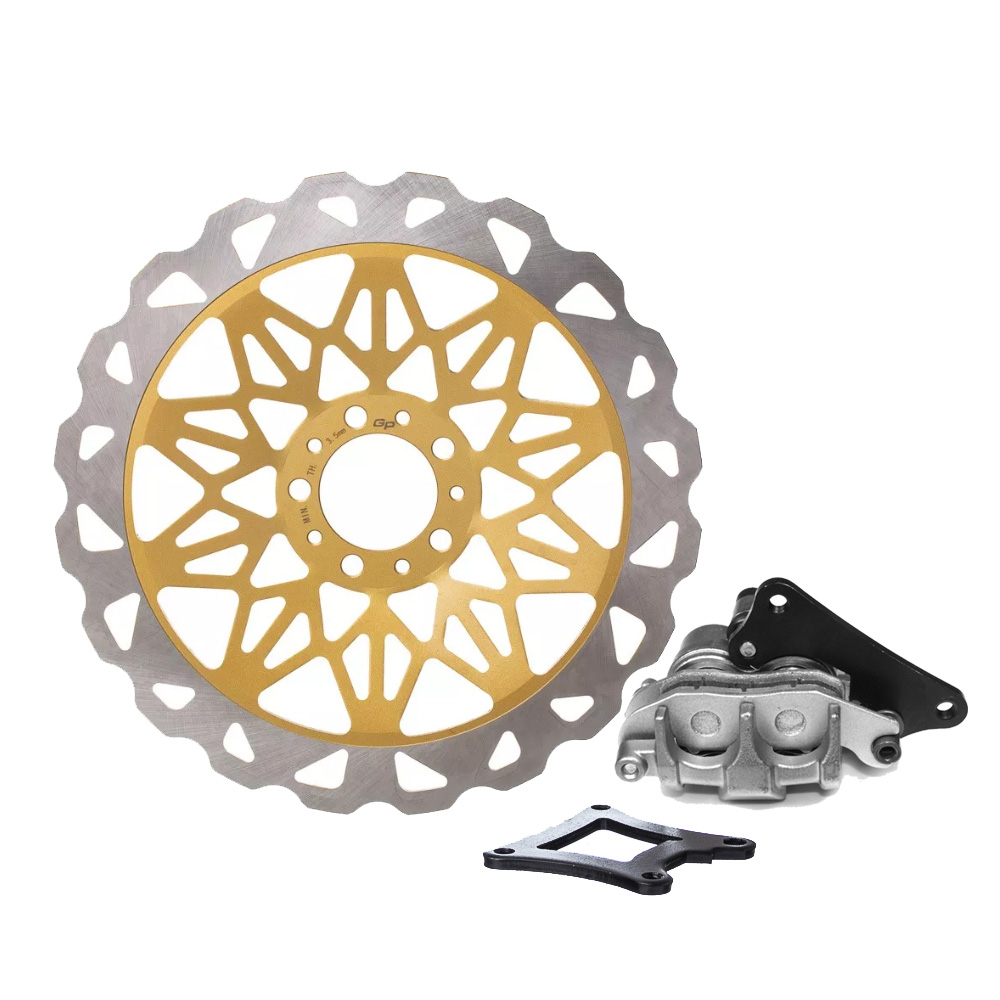 DISCO COM CALIPER E PASTILHA DE FREIO DIANTEIRO GP7 CG 150 ESD 2009 a 2015 320MM DOURADO
