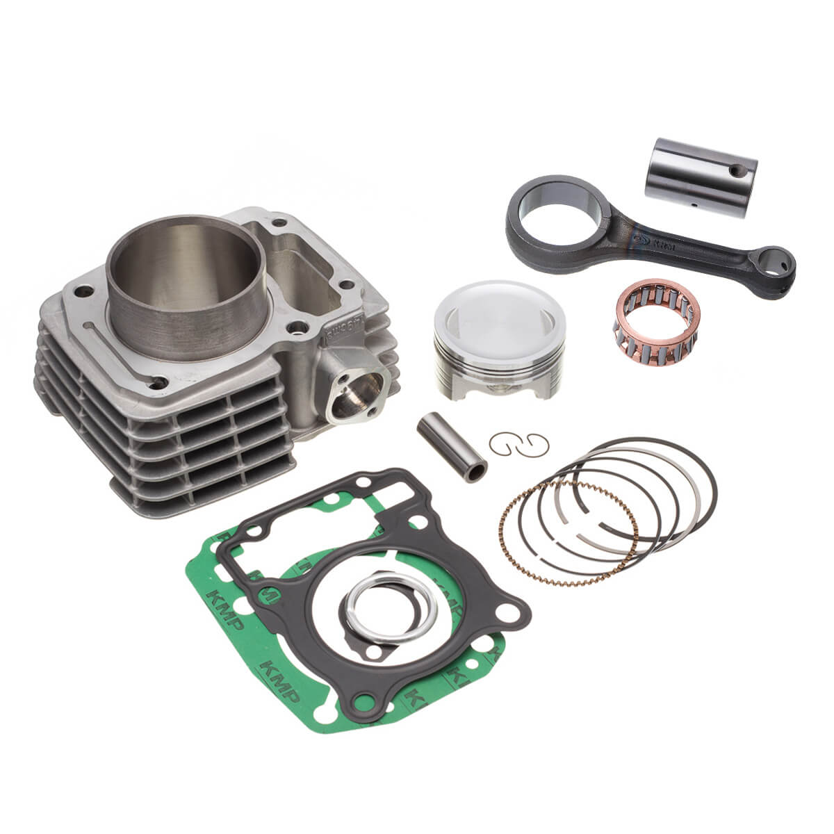 Descrição: KIT MOTOR KMP/TXK (COM CILINDRO. PISTAO. ANEL. JUNTA KIT-A. BIELA) CG 190 – BROS 190 (CG 150 2004/2015 – BROS 150 2006/2015 COMPETICAO KIT AUMENTO P/ 190CC 64.50MM)