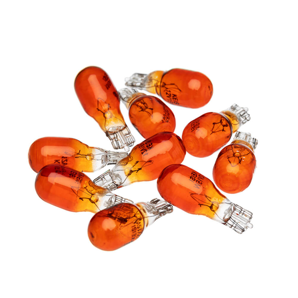 Descrição: LAMPADA PISCA KEISI 12V 15W CG 150 ESMAGADA AMARELA (VIDRO AMBAR – ESMAGADA/PINGÃO W2,1×9,5d – 01 POLO)