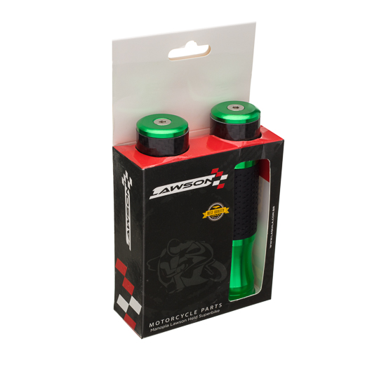 Descrição: MANOPLA LAWSON HELD SUPERBIKE C/ PESO E GUIA DO CABO UNIVERSAL GRIP E ALUMINIO VERDE