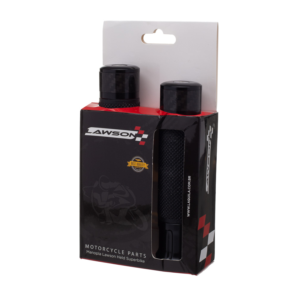 Descrição: MANOPLA LAWSON HELD PLUS SUPERBIKE C/ PESO E GUIA DO CABO UNIVERSAL GRIP E ALUMINIO PRETA