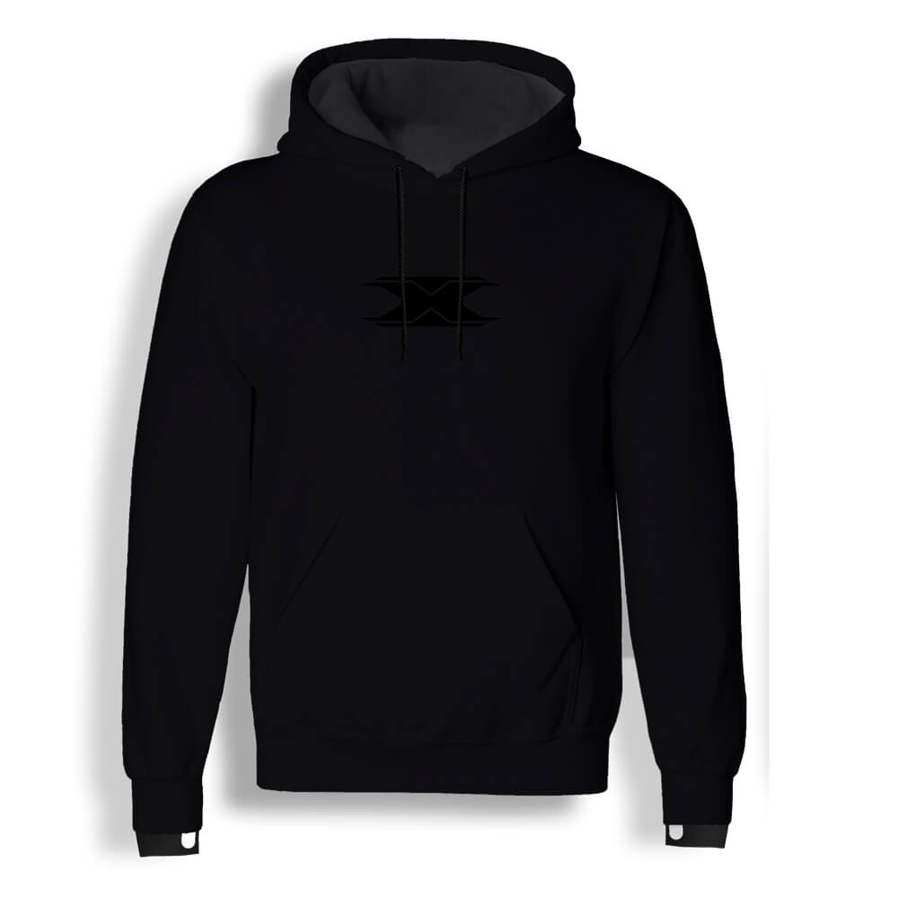 Descrição Técnica: MOLETOM KANGAROO TEXX PRETO COM PRETO MATERIAL ALGODAO E POLIESTER 2 FIOS MODELO RACING